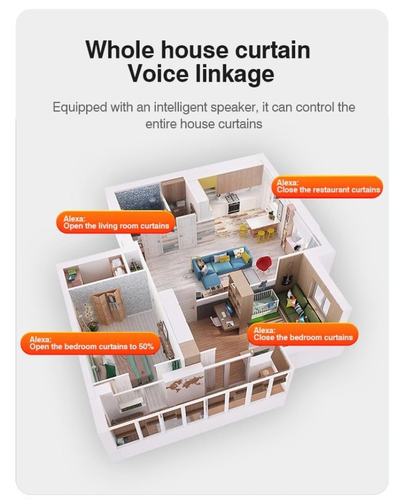 - ترجمة فورية للأوامر: فتح وإغلاق تلقائي للستائر دون مجهود.