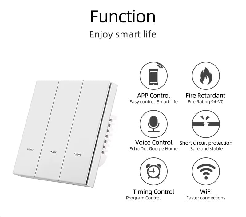مفتاح انارة ذكي أزرار ( ثلاثي ) من بلاستيك مقسي ABC+ كمبيوتر PC