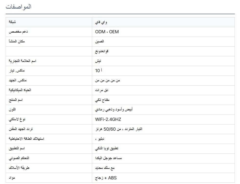 - المواصفات: