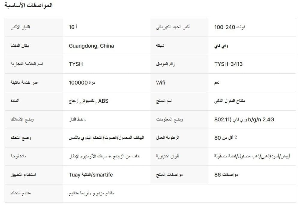مواصفات المنتج الفنية:
