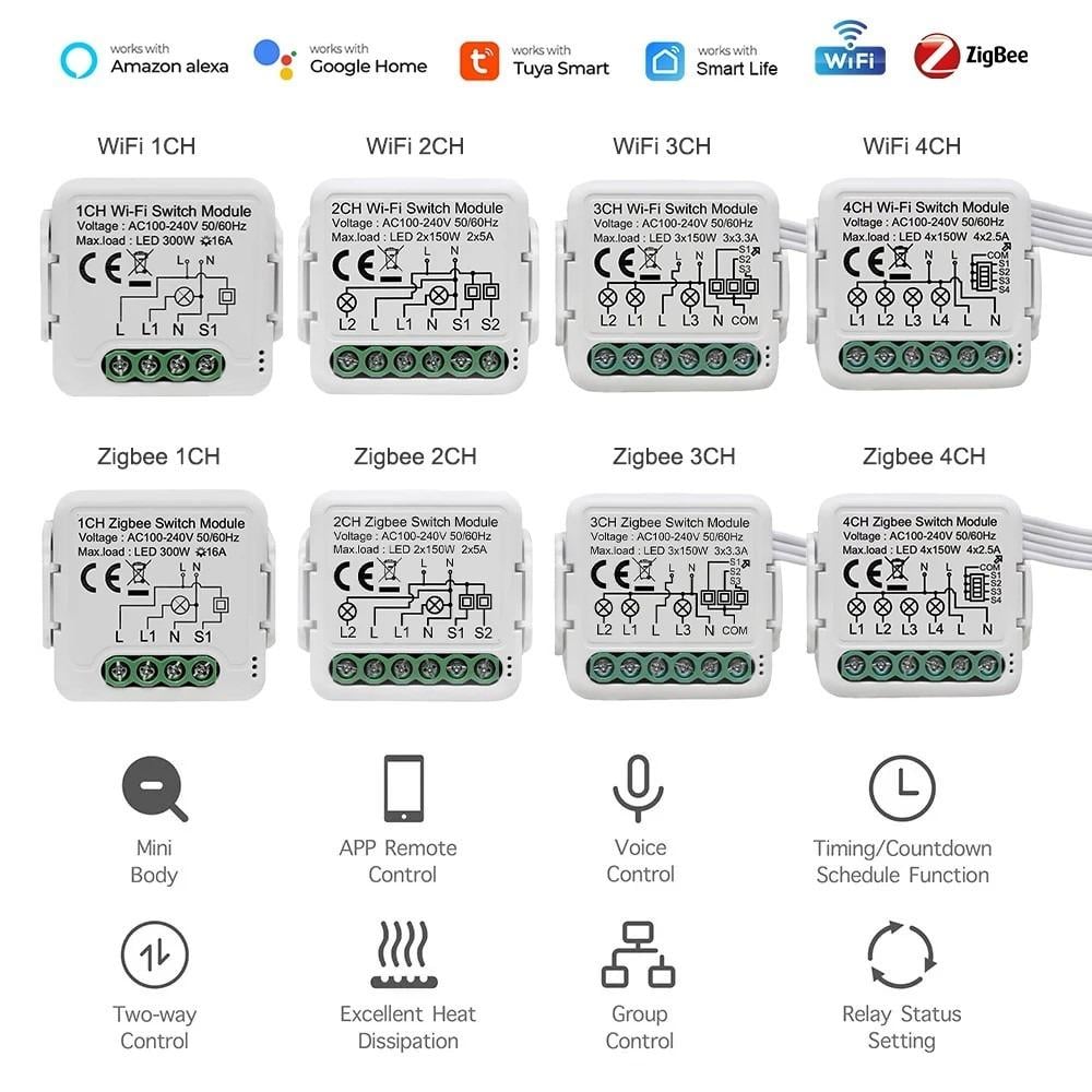 الخاصيةالمواصفاتالطرازTuya TYSH 1/2/3/4 Gangالجهد الكهربائي100–240 فولت ACالتيار الأقصى10 أمبيرالقدرة القصوىحتى 600 واطنوع الشبكةWiFi 2.4GHz + ZigbeeالموادABS مقاوم للحرارةالأبعادتقريباً 50 × 50 × 35 ممعمر التشغيلأكثر من 100,000 دورةطريقة التركيبخلف مفتاح الإضاءة (يتطلب خط محايد Neutral)البروتوكولات المدعومةTuya / Smart Life / Google Home / Alexa