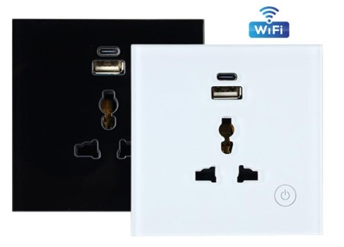 مقبس ذكي بقدرة 16 A مع منفذ USB وجسم زجاج مقاوم